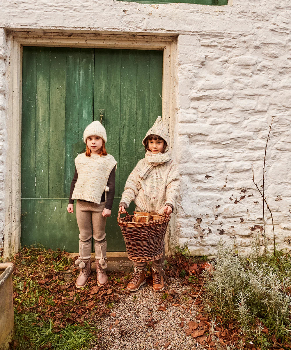 Knitted in a fisherman's rib stitch, in a speckled cloud-like light yet chunky yarn.