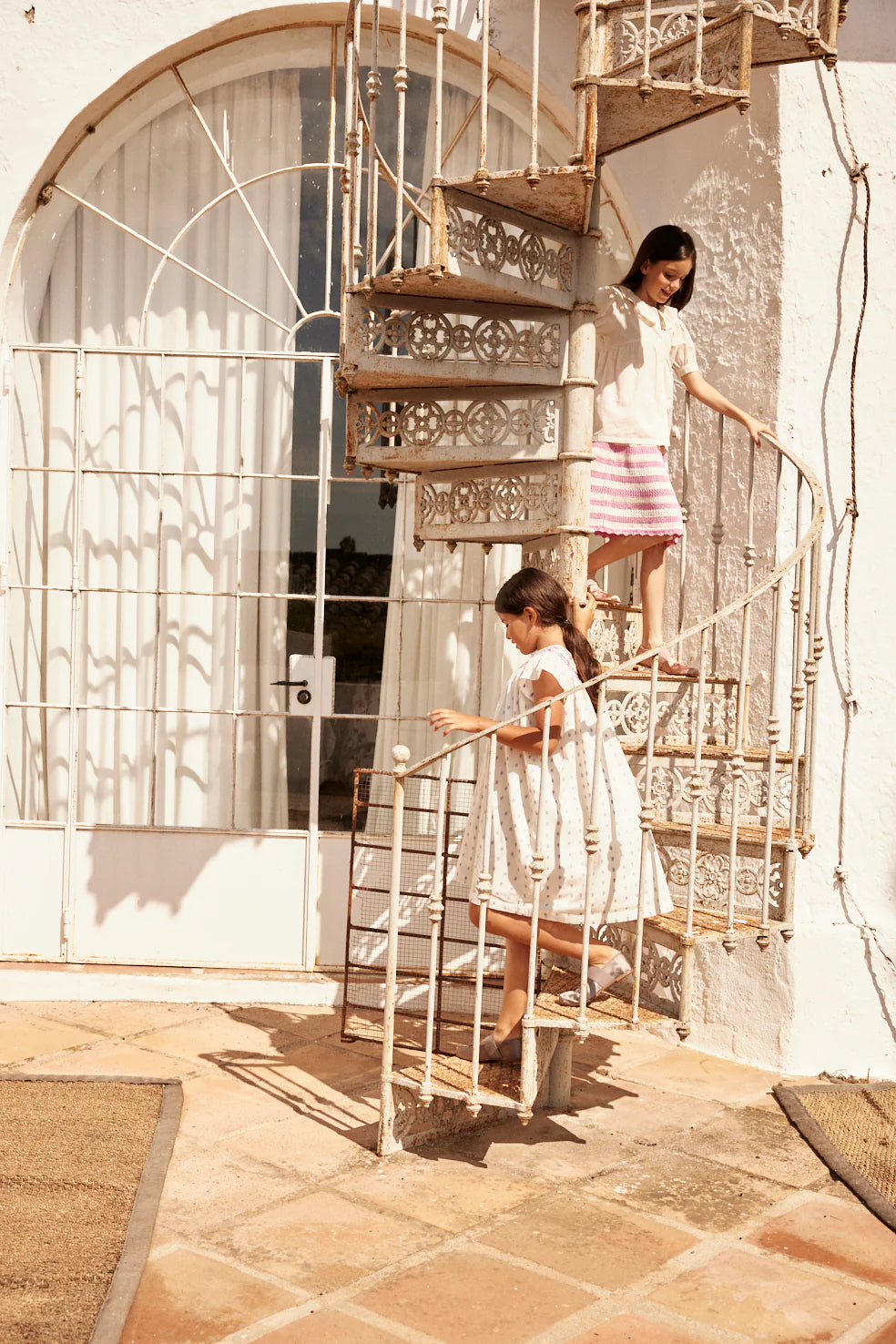 Introducing the lovely Diana dress - full of throwback charm. Crafted from the softest cotton in an adorable vintage-inspired micro floral print. Features gently ruffled butterfly sleeves, hand smocked neckline with hand-made floral embroideries. As usual, a flouncy skirt - perfect for twirling.