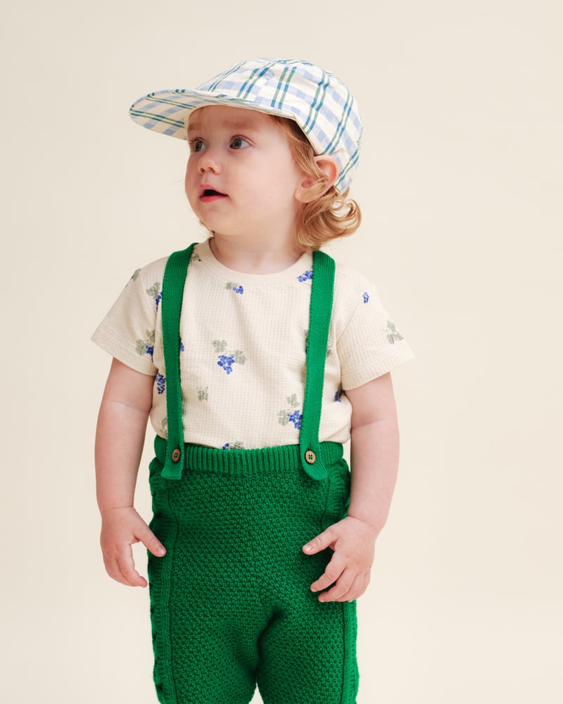 Jersey t-shirt for baby with a straight fit in a structured quality and beautiful hand-drawn print. The t-shirt is made from soft organic cotton jersey and has a round neckline with ribbed cuffs and a straight cut hem and buttons on one shoulder for easy dressing.